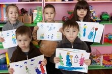 Рәсем эшчәнлегендә балалар кар бабай ясадылар һәм буяулар белән матур итеп бизәделәр.
