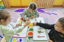 Балалар тоз ярдәмендә көзге агачларны бизәделәр.Рәсемнәр бик матур чыкты ,балалар көз фасылының узенә генә хас булган матурлыгын чагылдырдылар.