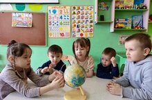 Воспитанники познакомились с макетом земли -глобусом.Они узнали что означают цвета и чем отличается земля от других планет.