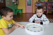 На занятиях воспитанники продолжают знакомиться с часами .Они изучают что такое сутки ,день ,час .