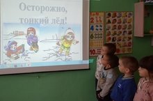 В рамках акции"Осторожно ,тонкий лед!" дети познакомились с правилами безопасности на льду ,также показали презентацию о правилах поведения на льду.