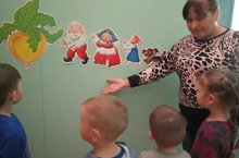 Воспитанники детского сада продолжают знакомиться сказочными героями.Также они учатся пересказывать любимые сказки.