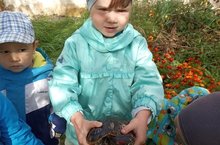 Безнең балалар бакчасына ташбака кунакка килде .Балалар тышкы кыяфәте белән таныштылар : аяклары һәм башы кыска ,тырнаклары бар ,калканы көрән төстә ташка охшаган һәм бизәкле икәнен курделәр. Ташбаканың яшен калкандагы тугәрәкләрдән саныйлар ,ничә тугәрәк бар шул хәтле яшь .Очрашу бик кызыклы утте,балалар кәбестә белән сыйладылар.