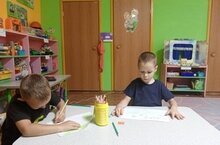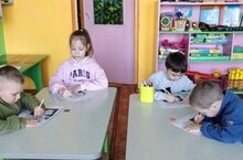 Сегодня дети на занятие по математике учились обводить по контуру,после раскрасили фигурки разноцветными карандашами.
