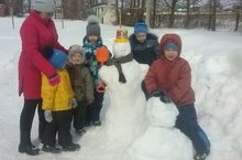 Мы любим лепить из снега разные фигуры.Вот и сегодня на прогулке мы слепили снеговика,потому что хоть и наступила весна -зима не торопится уходить./Без кар белән уйнарга яратабыз.Яз килсәдә кыш китергә ашыкмый.
