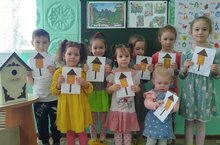 Яз җитүгә,җылы яклардан безнең канатлы дусларыбыз-сыерчыклар туган җирләренә кайталар.Ябыштыру эшчәнлегендә балалар сыерчыклар турында белемнәрен ныгыттылар һәм төрле геометрик фигураларны кисеп сыерчык оясы ябыштырдылар.Барлык балалар да үз эшләреннән канәгать,шат калдылар.