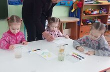 Балаларны рәсем шөгылендә рус халык уенчыклары белән таныштыруны дәвам итеп дымка уенчыкларын бизәргә өйрәндек.