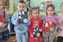 Әниләребезне бәйрәм белән котлап открыткалар ясадык.Дети с большой любовью к мамам изготовили праздничные открытки наступающиму женскому праздникуё