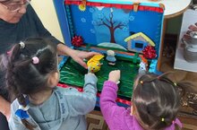 Сөйләм телен үстерү,сүз байлыгын арттыру,кул чуклары мускуллары хәрәкәтен үстерү максатыннан,"Чемоданда әкият"не кулланып,"Йомры икмәк" әкиятен күрсәттек.Используя дидактическое пособие"Сказка в чемодане "показали и рассказали сказку" Колобок "-развивать речевое развитие.