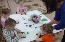 Кисеп-ябыштыру шөгылендә балалар чыршыны матур уенчыклар белән бизәделәр. С большим старанием дети сделали свои елочки и украсили игрушками.