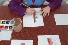 Рәсем шөгылендә, балалар, рэсем ясарга бик тә яраталар.Буген уртанчы төркем чыршы ясап бизэп тэ куйдылар. 2 кечкенэр торкеме бияләй бизәргә өйрәнделәр.