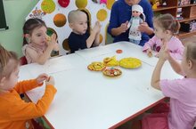 Балалар белән кунак каршылаганда пешерелә торган татар халык ашлары,кунакчыллык,үз-үзеңне әдәпле тоту кагыйдәләре турында танышуны дәвам иттек.Пластилинны ике уч арасында әйләндерү хәрәкәтләре ясап ,тәрлечә тоташтырып крәндильләр ясадык.