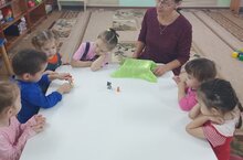 Балаларның шөгыль вакытында саннар буенча предмет төркемнәрен аера белүләрен ныгыттык, төсләрнең исемнәрен кабатладылар ,сорауларга җавап бирүләрен үстердек.