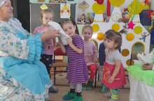 балаларны халкыбызның күркәм гореф-гадәтләре ,йолалары белән таныштыру максатыннан,бакчабызда мәдәният хезмәткәрләре катнашында"Каз өмәсе"уздырылды.Балалар каз мамыгыннан, канатыннан ясалган эшләнмәләр белән таныштылар,"Чума үрдәк,чума каз"уенын да яратып уйнадылар.