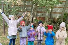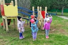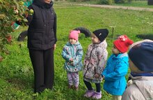 Балалар белән табигатькә чыктык,агачларны күзәттек.Соңыннан саф һавада уйнадылар, яфраклардан "яңгыр" яудырдылар.