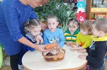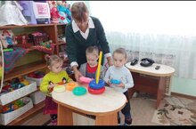 Дидактик уен аша балалар предметларның зурлыгын,төсен билгеләргә өйрәнүне,сенсор тою сәләтләрен үстерүне дәвам иттек.Обогощение сенсорного опыта детей через дидактическую игру.Дети учились группировать кольца пирамидки по размеру и цвету.