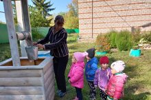 Цель прогулки: приобщение детей к истокам народной культуры, дать понятие что такое колодец ,в чём его назначение.Научить технике безопасности у колодца.