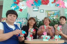 27 сентября - День воспитателя.Своими сделали поделки для наших ветеранов "Корзинка с цветами".