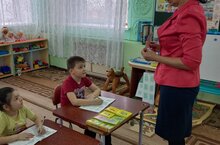 Балалар белән предмет санына карап саннарны табарга,кушу,алуга күнегүләр эшләүне дәвам иттек.Продолжали учить составлять и решать арифметические задачи на сложение и вычитание.