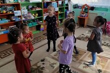 Балалар белән көйгә хәрәкәтләр ясарга өйрәнүне дәвам иттек.