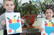 Буген өлкәннәр көне уңаеннан балалар үз эбиләренә бик матур буләк ясаганнар .Сегодня в честь дня пожилого человека дети своими руками сделали аппликацию "Ваза с фруктами".Они решили порадовать своих бабушек.