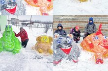 Мәктәп балалары белән берлектә кышкы сыннар ясадык.