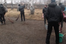 Ученики и работники школы убирали территорию школы. 14.04.2012