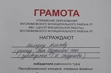 10 февральдә мәктәптән тыш эшләр үзәгендә үткәрелгән "Искиткеч әйдәман" конкурсының муниципаль турында 9 сыйныфы укучысы Әгъләмова Миләүшә "Самый яркий отрядный вожатый" номинациясендә җиңү яулады.