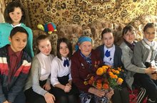 В рамках декады пожилых и месячника милосердия , учащиеся школы поздравили учителя-ветерана Зайнагову Ф.З.