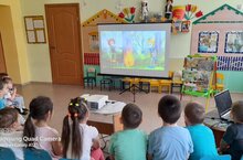 В рамках дня эколят воспитанники дошкольной группы совместно с учащимися начальных классов просмотрели мультфильмы.