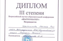 Успех сопутствовал учителю географии Шаяхметовой М. М. и ученице Шаяхметовой М. Р. на Всероссийской научно-образовательной конференции "Шаги в науку" заняли 3 место. Поздравляем!
