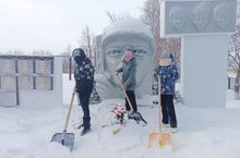 Акция «Снежный десант» по очистке памятника от снега. Ребята нашей школы постоянно шефствуют над памятником, погибшим в годы Великой Отечественной войны 1941-1945 гг: следят за его состоянием.