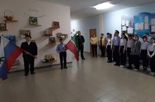 Тантаналы линейкалар дәвам итә. Гимнны җврлау бөнебездә дә патриотик рухны тәрбияли.