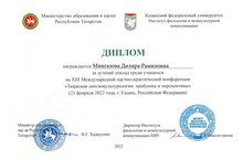 Наша ученикца Мингазова Диляра бала награждена дипломом в XIII Международной научно-практической конференции "Тюркская лингвокультурология: проблемы и перспективы" за лучший доклад среди учащихся. Руководитель: Давлетова Р.Ф. Поздравляем!