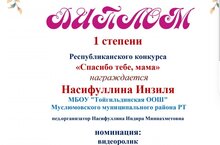 Ученица 8 класса Насифуллина Инзиля заняла 1 место в республиканском конкурсе "Спасибо тебе, мама" с видеороликом.