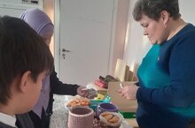 Бу шатлыклы уртак эш, анда үз иҗатыңның әйберләрен яки кулларның җылысын саклаучы пешерелгән ризыкларны алып килеп, Син якыныңа ярдәм итәсең. Укучылар балачактан ук мохтаҗларга игелек һәм ярдәм итү теләге үстерергә тиеш.В рамках декады инвалидов была проведена благотворительная ярмарка.