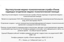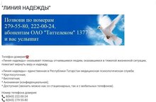 * Профессионально: Помощь оказывают только опытные подготовленные специалисты.Телефоны доверия в Татарстане: