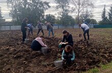 Сегодня в школе состоялся осенний субботник. Обучающиеся, учителя и работники школы убирали картофель на пришкольном участке.