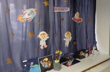 Сегодня в Созвездии рассказыают детям о первом космнавте Юрии Гагарине. В холле детского сада организованна выставка поделок "В мире космоса".