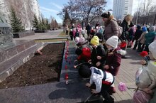 Шествие Бессмертного полка состоялось сегодня для всех воспитанников детского сада и завершилось оно солдатской кашей, которую дети с удовольствием ели на свежем воздухе.