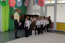 Сегодня состоялся смотр строя и песни. В течении месяца, дети разучивают патриотическую песню и готовят атрибуты и костюмы для проведения смотра строя и песни. Смотр строя проводился в виде конкурса, дети получали по итогам мероприятия благодарности и памятные призы.