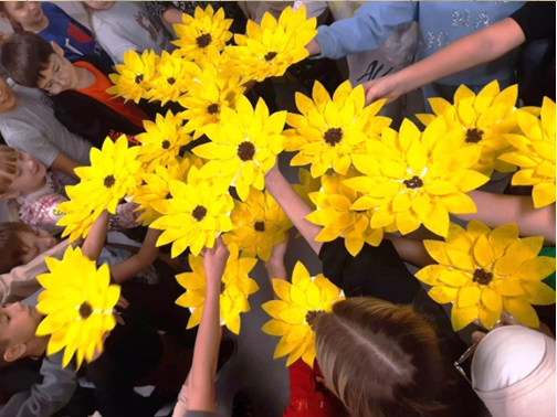 Без внимания не остались и дети из пришкольных лагерей. Ребята смогли принять участие в мастер-классе по созданию настоящего калейдоскопа, который каждый унёс домой как символ ярких впечатлений этих каникул. Большой интерес вызвал мастер-класс по изготовлению панно «Подсолнух», на котором дети смогли проявить фантазию и творческие способности.