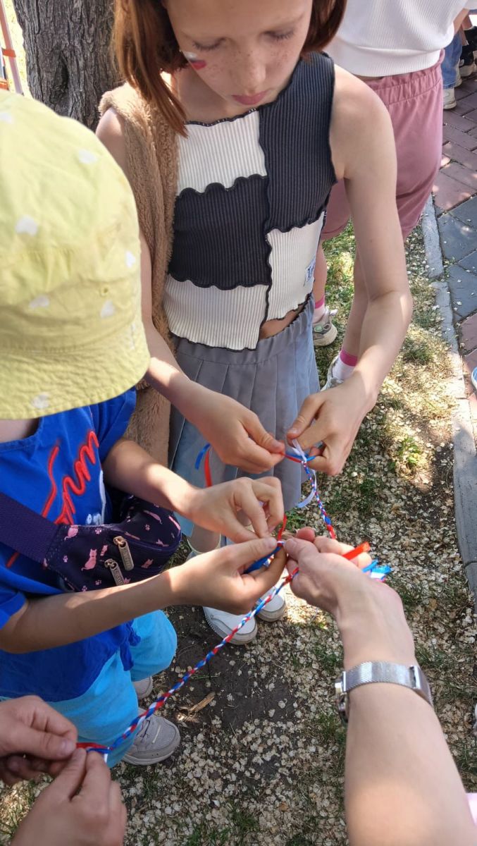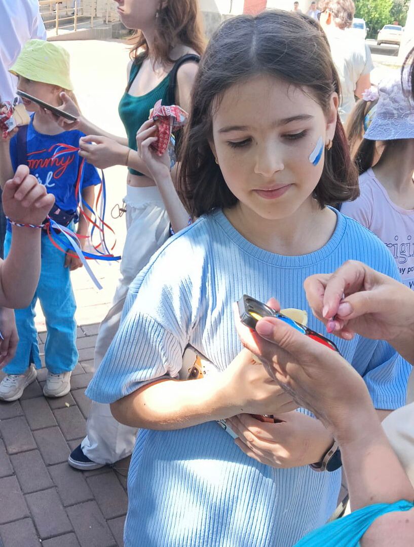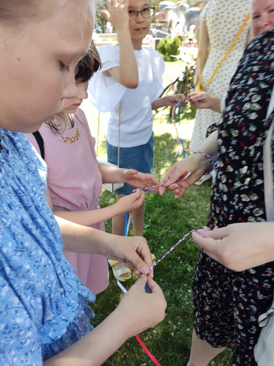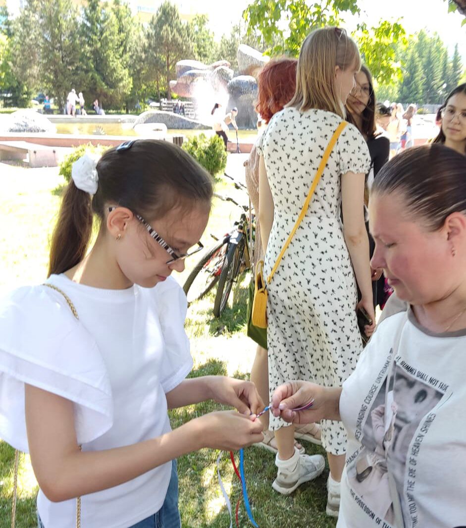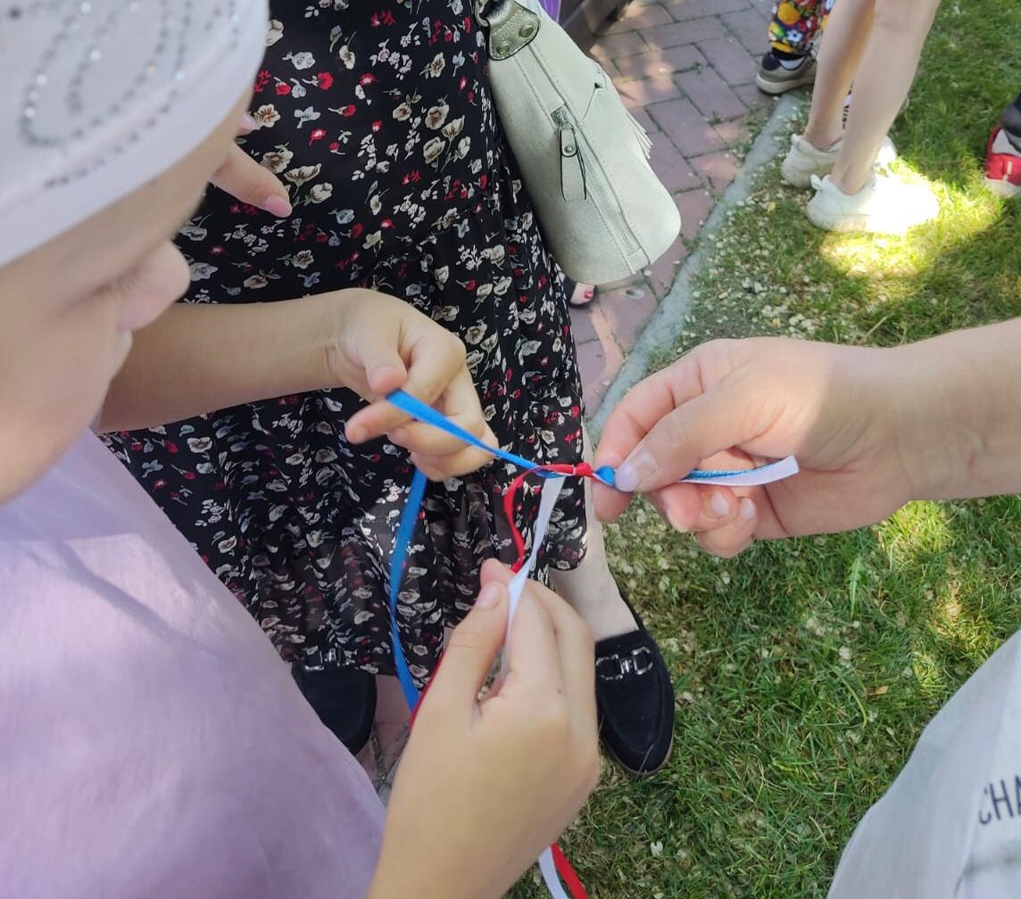 В День защиты детей на бульваре Энтузиастов работала творческая площадка Студии театра и костюма «Отражение». Педагоги театра со всеми желающими детьми плели браслеты из ленточек с символикой триколора.Мы желаем каждому ребенку иметь крепкую семью и все необходимое для счастливого детства. Пусть улыбки маленьких обитателей Земли освещают нашу планету, а все дети будут здоровыми и счастливыми!