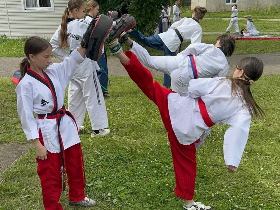 В рамках лагеря были организованы учебно-тренировочные занятия по каратэ, которые включали как теоретическую, так и практическую подготовку. Занятия проводились опытными педагогами нашего Центра Денисом Викторовичем и Даниилом Денисовичем Карпухиными.