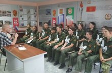 С интересом слушают постовцы школы 46 им. кавалера ордена Мужества Д. Бадретдинова историю экспонатов,найденных во время поисковых экспедиций Смирновым А.В. 16.07.2021