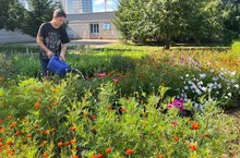 Җәйге каникул вакытында мәктәп яны тәҗрибә участогында һәм хезмәт лагерендә эшләүче укучылар җәй буе тырышып хезмәт куялар. Июль, август айларында яңгыр булмады дисәк тә ялгыш булмас. Шулай булса да гимназия тирәсенә утыртылган аллы - гөлле чәчәкләр тирә – юньгә ямь биреп үсеп утыралар. Искиткеч матурлык! Бу әлбәттә безнең укучыларыбызның, җаваплы укытучыларыбызның күп көч куюы, тырышлыгы нәтиҗәсе. Август аенда эшләтүче педагоглар - Заһитова Зөлфия Мөхәмәтнур кызы һәм Маврина Рузилә Сәгыйрь кызы укучылар белән уртак тел табып эшлиләр, укучыларны хезмәт күнекмәләренә төшендерәләр, матурлыкны күрә белергә, сакларга өйрәтәләр.