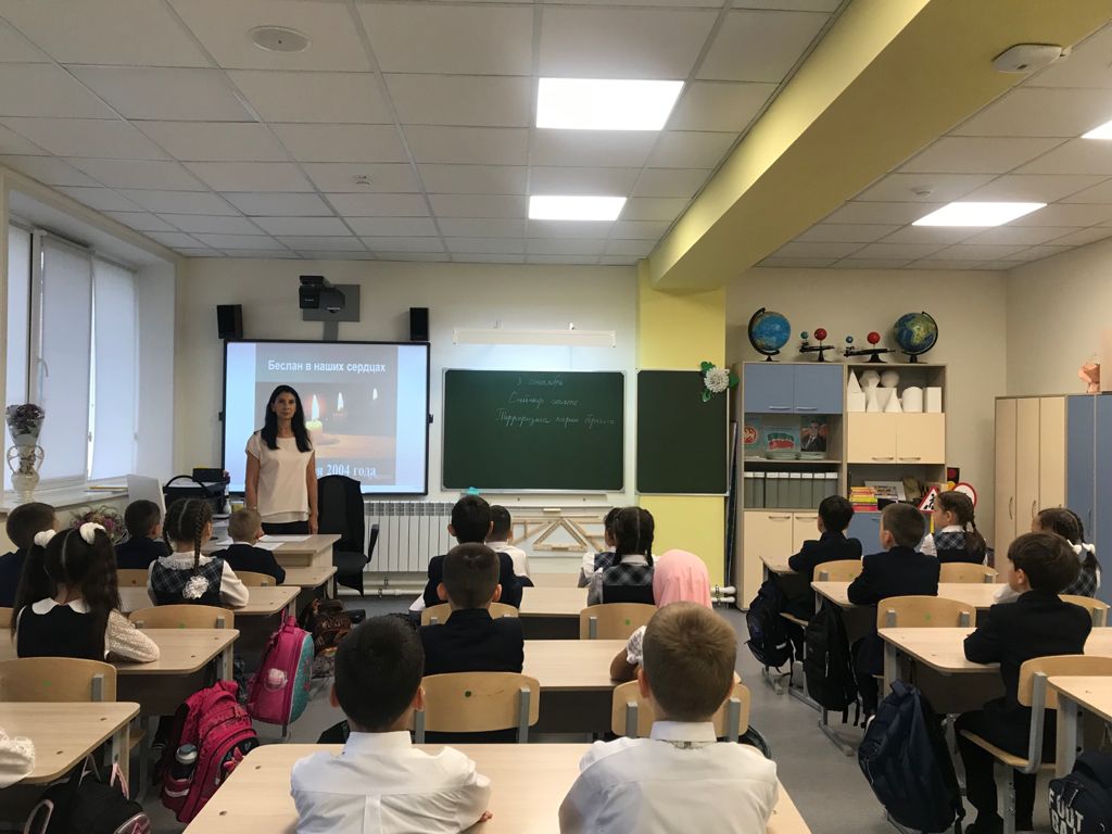 Ел саен 3 сентябрь 2004 елда Бесланда булган куркыныч терактта гаепсезгә корбан булган 300 балаларны һәм аналарны искә алу көне.Шул уңайдан сыйныф сәгатьләре узды. Укучыларга тормышка куркыныч янаган вакытта үтәлергә тиешле кагыйдәләр турында аңлатылды.