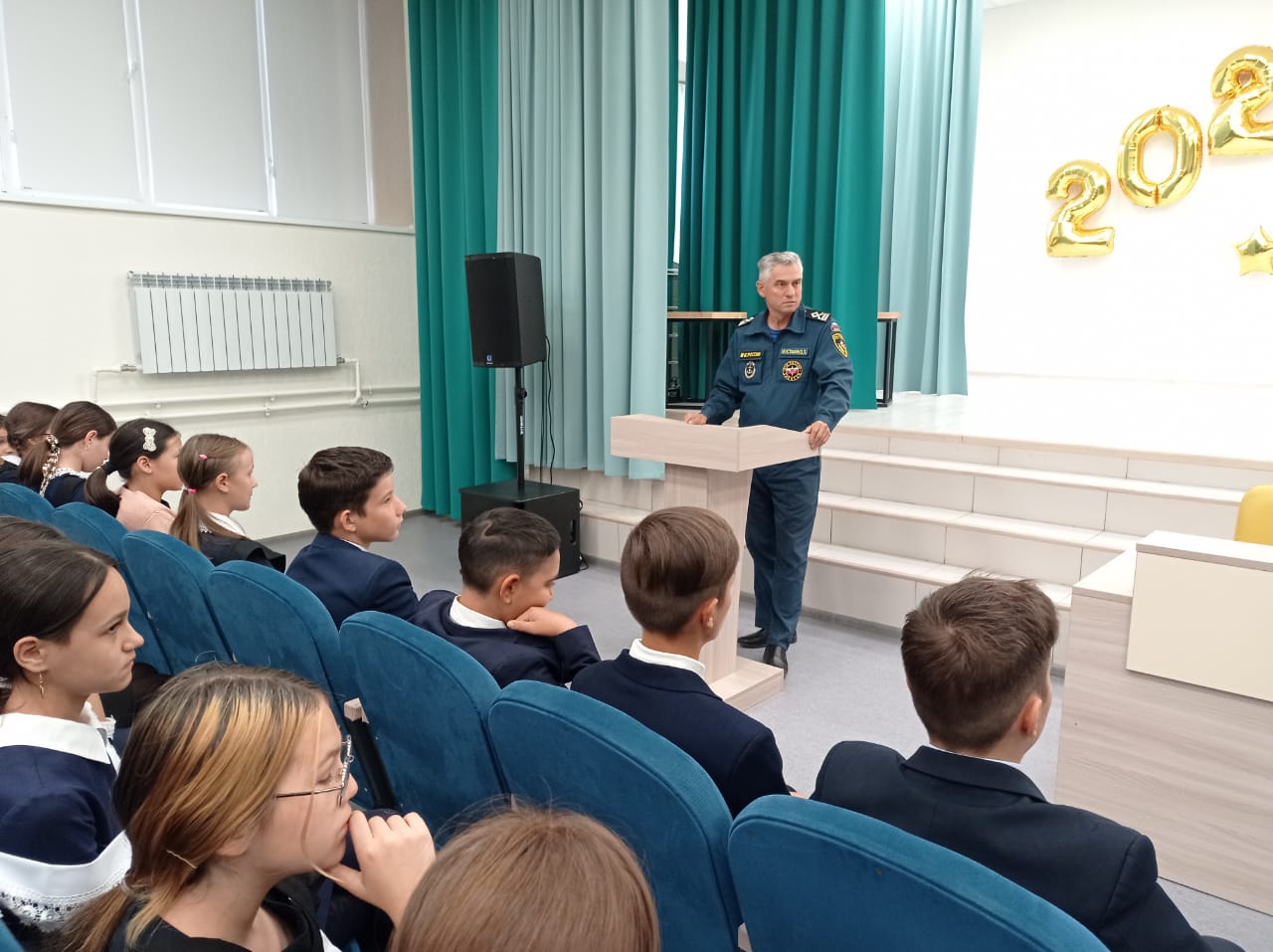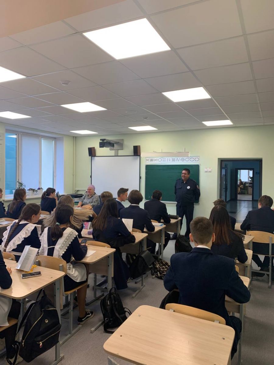 5-9 сыйныф укучылары ГИМС ГУ МЧС инспекторы Мостафин Зиннур Хазинур улы белән очраштылар һәм “Көзге чорда сулыкларда куркынычсызлыкны тәэмин итү” темасына лекция тыңладылар, үзләрен кызыксындырган сорауларга җавап ишеттеләр. -