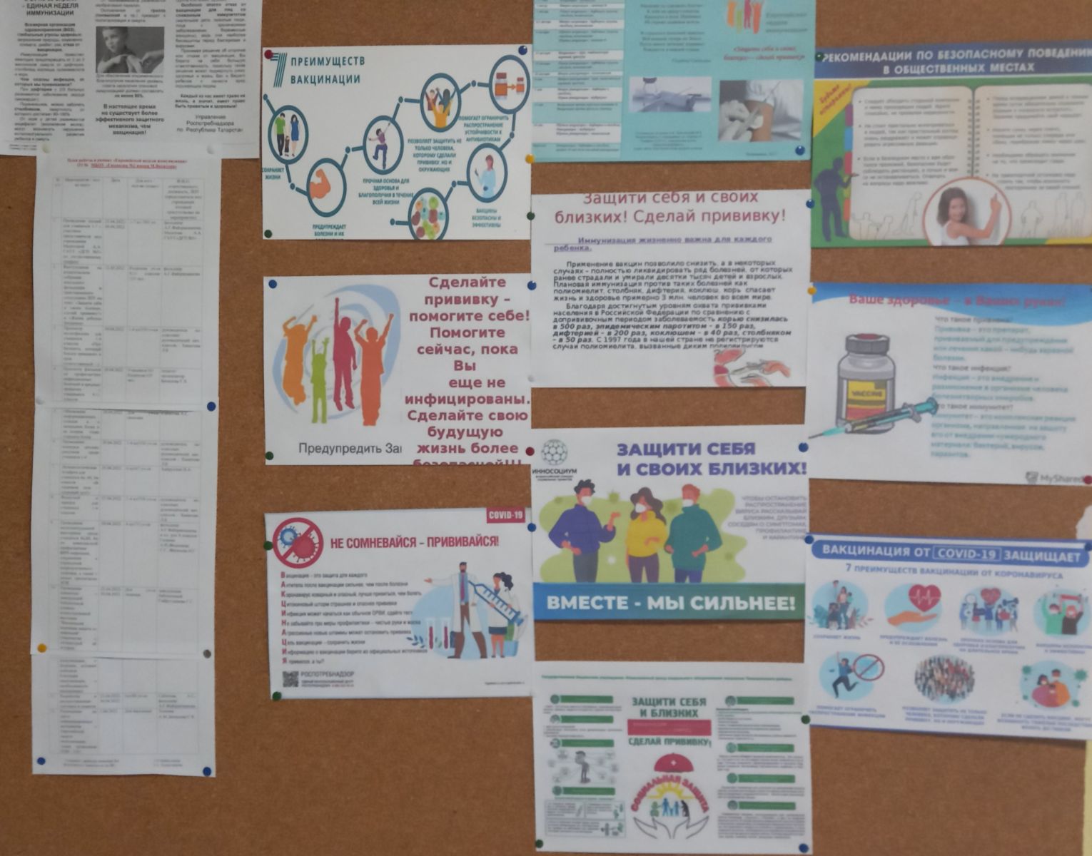 Гимназия рекреацияләрендә прививка ясатуның асылы турында информацион стенд ясалды, башлангыч сыйныф укучылары тематик рәсем конкурсында катнаштылар.