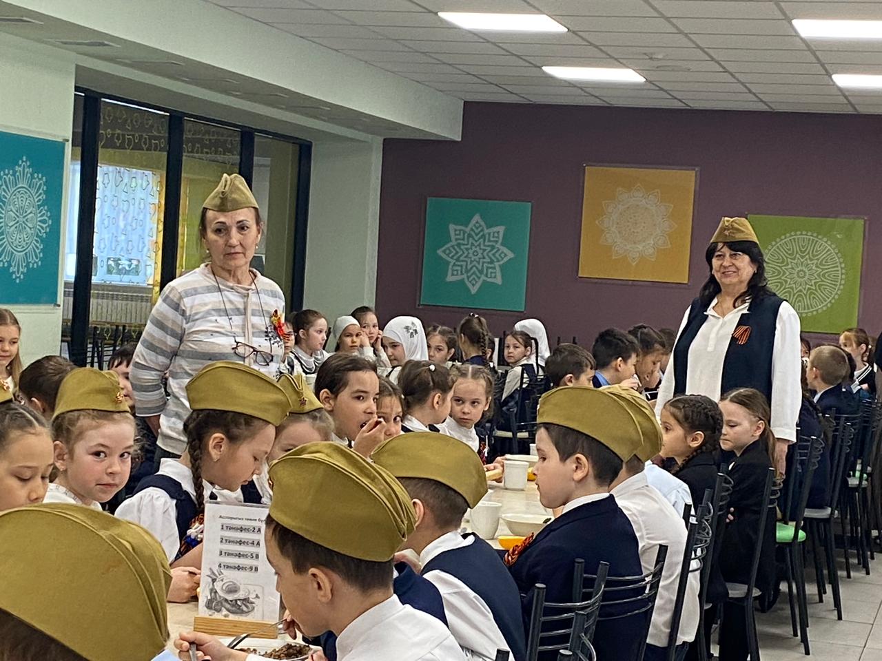 Бүген гимназия ашханәсендә укучылар өчен солдат боткасы әзерләделәр. Көн дәвамында тәнәфестә яңгыраган сугыш чоры җырлары, атрибутика, солдат боткасы- болар барысы да укучылар Яшәү кыйммәтен, Җиңү кыйммәтен аңласын өчен тудырылган шартлар.